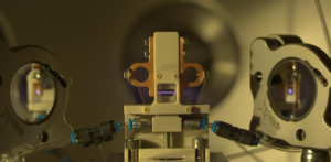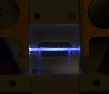 Picture 1: Discharge in the Sapphire capillary (test setup: LUIS-Lab / Dr. K.Kruchinin)